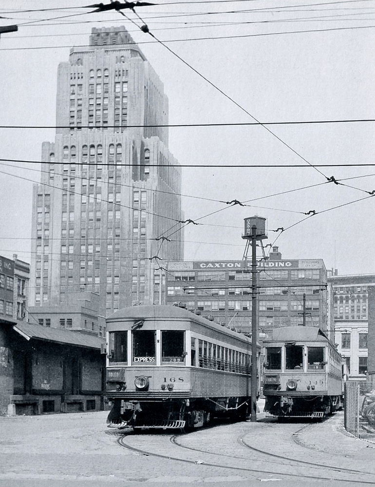Here three coaches wait for the call to commuter duty at Public Square. (Harry Christiansen) |